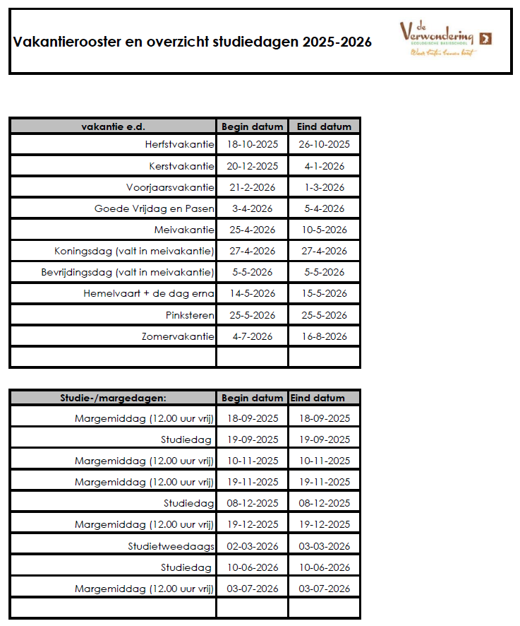Vakantierooster